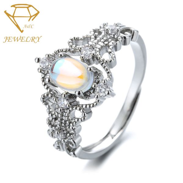 Retro Opening Band Adjustable Silver Women Moonstone Ring